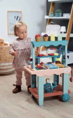 Un joli cabas rempli de fruits et légumes. Détail des 17 fruits et légumes inclus : 1 champignon, 2 citrons, 2 courgettes, 2 carottes, 2 oranges, 2 pommes de terre, 2 poivrons, 1 pomme, 1 poire et 2 grappes de raisin. En plastique.
