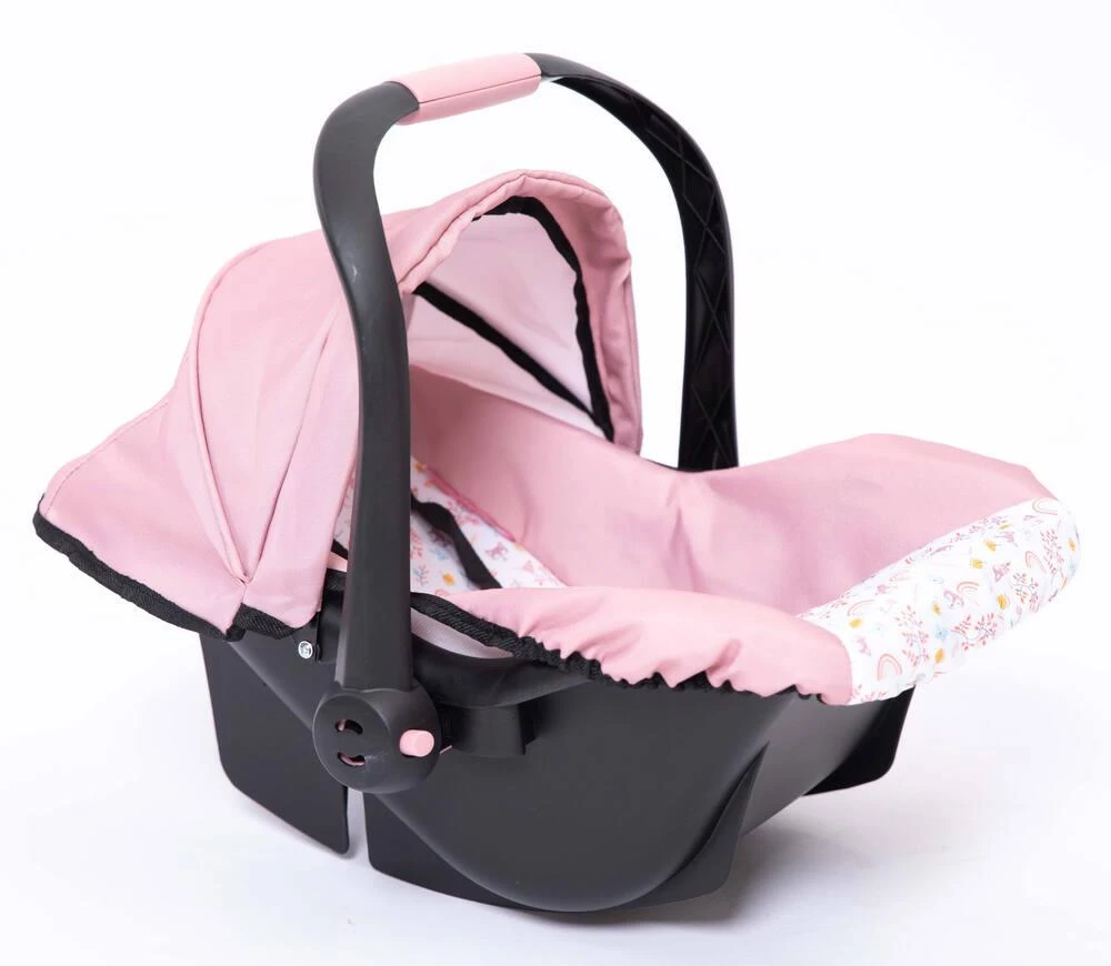 Siège auto coque ou cosy au design modern. Pour poupée jusqu’à 46 cm (non fournie). Avec canopy (capote de poussette) protégeant la poupée du soleil ou du vent. La capote est amovible et ajustable. Avec ceinture de sécurité intégrée. Poignée ergonomique permettant un transport facile et confortable. Poignée ajustable de 14 à 35 cm. Léger et facile à porter. Matières du siège auto : en PP et tissu en polyester. Poids du siège auto : 0.75 kg. Pas besoin d’assemblage. Siège auto compatible avec le landau de ville (jcu 41055667, vendu séparément) : il peut être monté sur le landau.