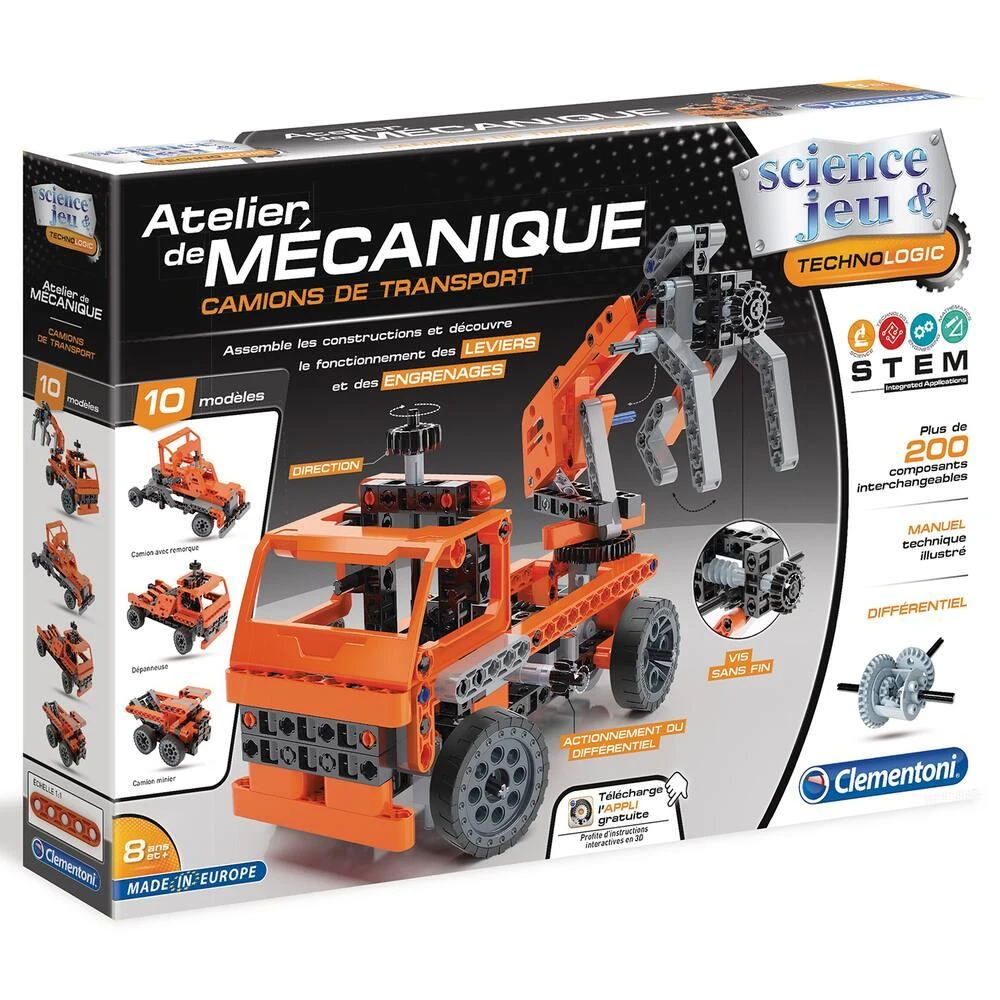 Construis d’incroyables Camions de Transport et découvre comment ils fonctionnent. Expérimente les transmissions, utilise des engrenages… 10 modèles à assembler à l’aide des 200 composants dont : engrenages, poulies, différentiel, pneus avec jantes etc. Le manuel illustré expliquera à l’enfant comment construire les modèles et lui apportera également des informations scientifiques.