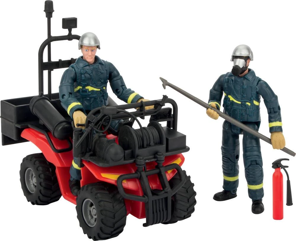 Echelle 1:18. Le quad est un véhicule tout-terrain (ATV en anglais). 2 figurines articulées de 9.5 cm (21 points d’articulations minimum) : chaque figurine peut tenir debout seule. Avec des accessoires.