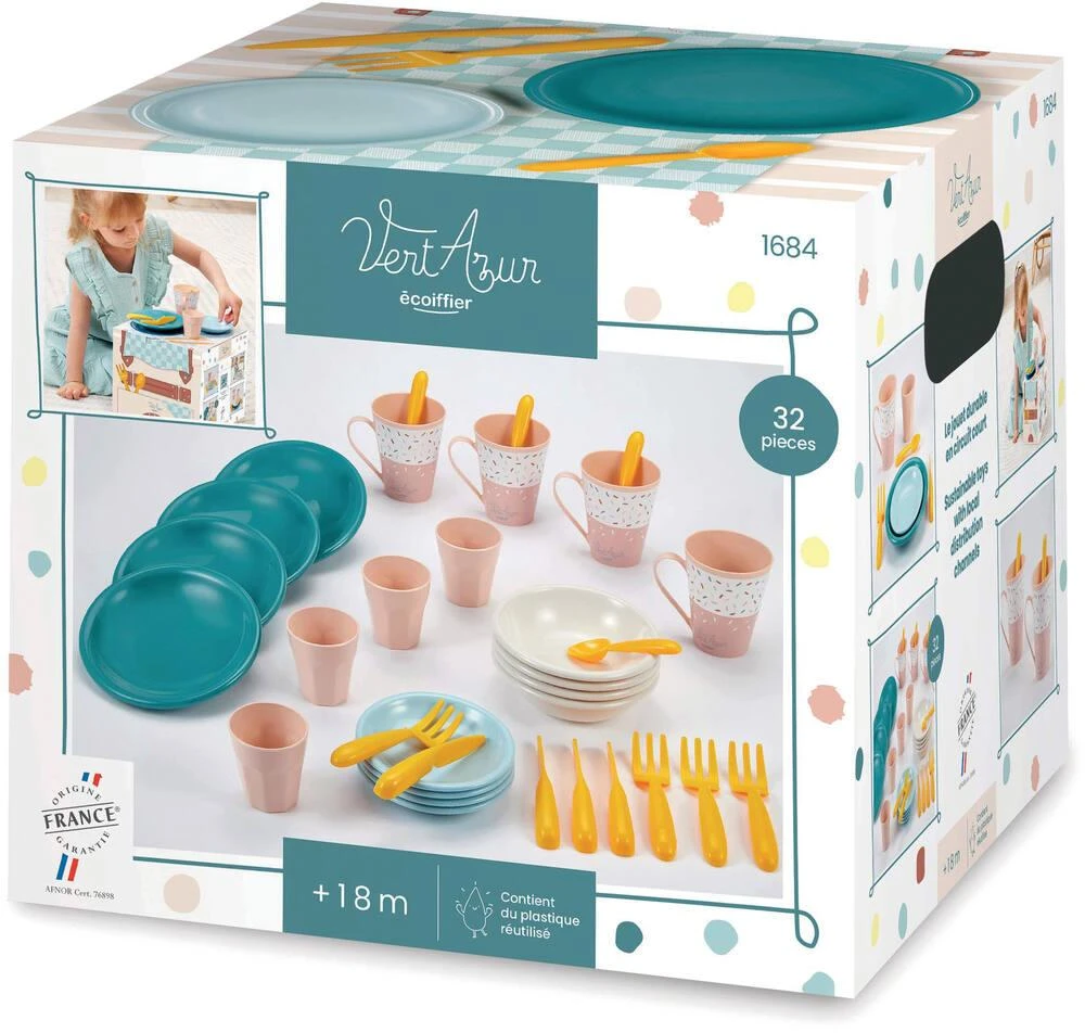 Très malin, cette boite servira de panier pique- nique pour transporter votre vaisselle dans le jardin. Ce produit de la gamme VERT AZUR s’inscrit dans une démarche éco-responsable. 32 pièces.