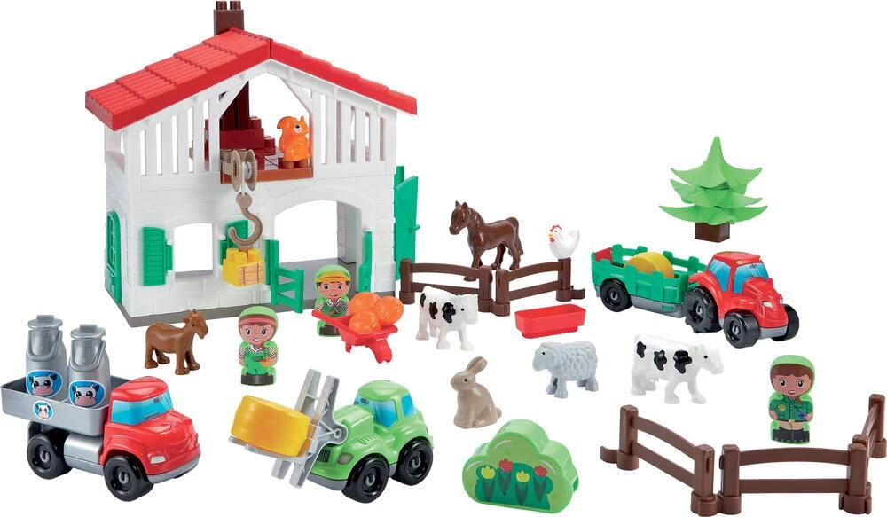 Retrouve tout l’univers de la ferme : 1 maison du fermier, 1 camion, 2 tracteurs, 8 animaux et de nombreux accessoires inclus.