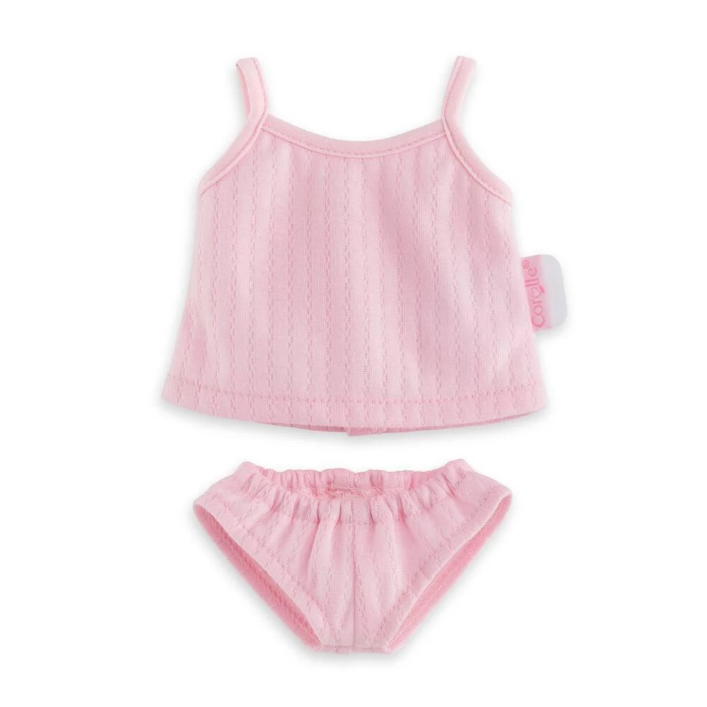 L’ensemble de sous-vêtements est composé d’une chemise à bretelles et d’une culotte pour grand poupon de 36 cm.