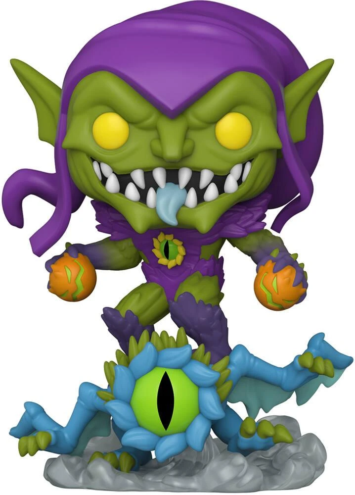 Série Pop! Marvel Mech Strike: Monster Hunters. Figurine en vinyle avec tête dodelinante (oscillante). La tête montée sur ressort bouge d’un côté à l’autre. Il s’agit du personnage du Bouffon Vert (Green Goblin en anglais), un super-vilain évoluant dans l’univers Marvel.