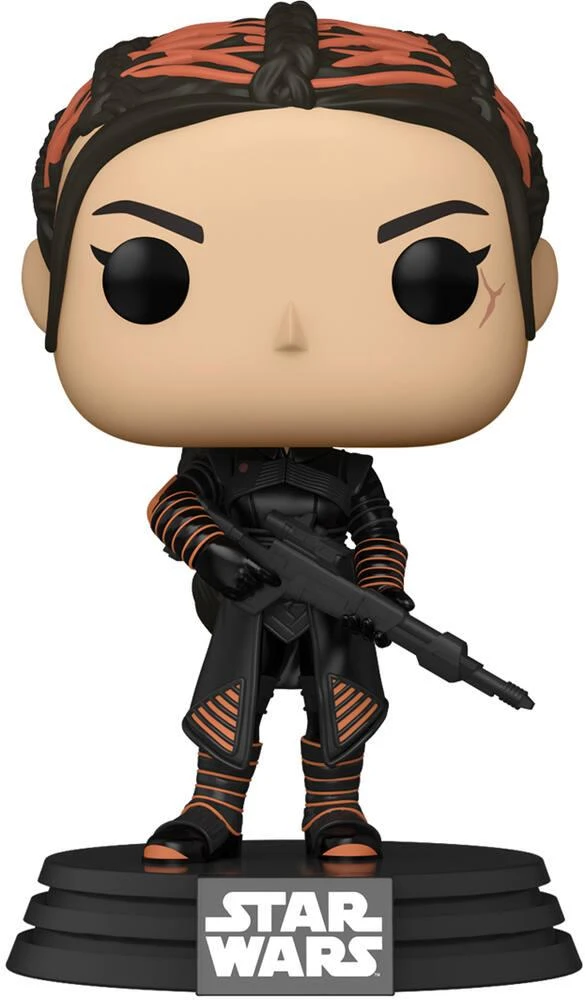 Série Pop! Star Wars : The Mandalorian. Figurine en vinyle avec tête dodelinante (oscillante). La tête montée sur ressort bouge d’un côté à l’autre. Il s’agit de Fennec Shand, une chasseuse de primes dans la série télévisée Star Wars : The Mandalorian, le Mandalorien en français.