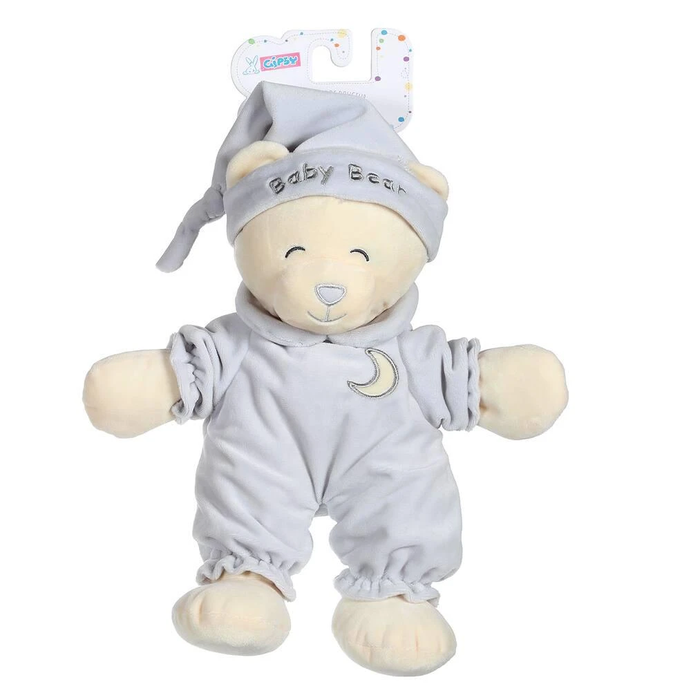 Peluche ours baby bear douceur gris, lavable à 30°.
