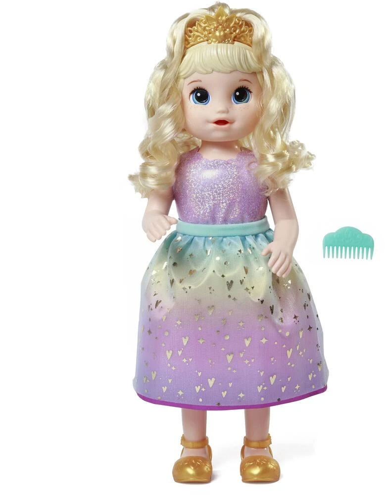 Cette poupée grandit de petite fille à princesse ! Interactive, elle émet plus de 75 sons et phrases. 9 accessoires inclus.