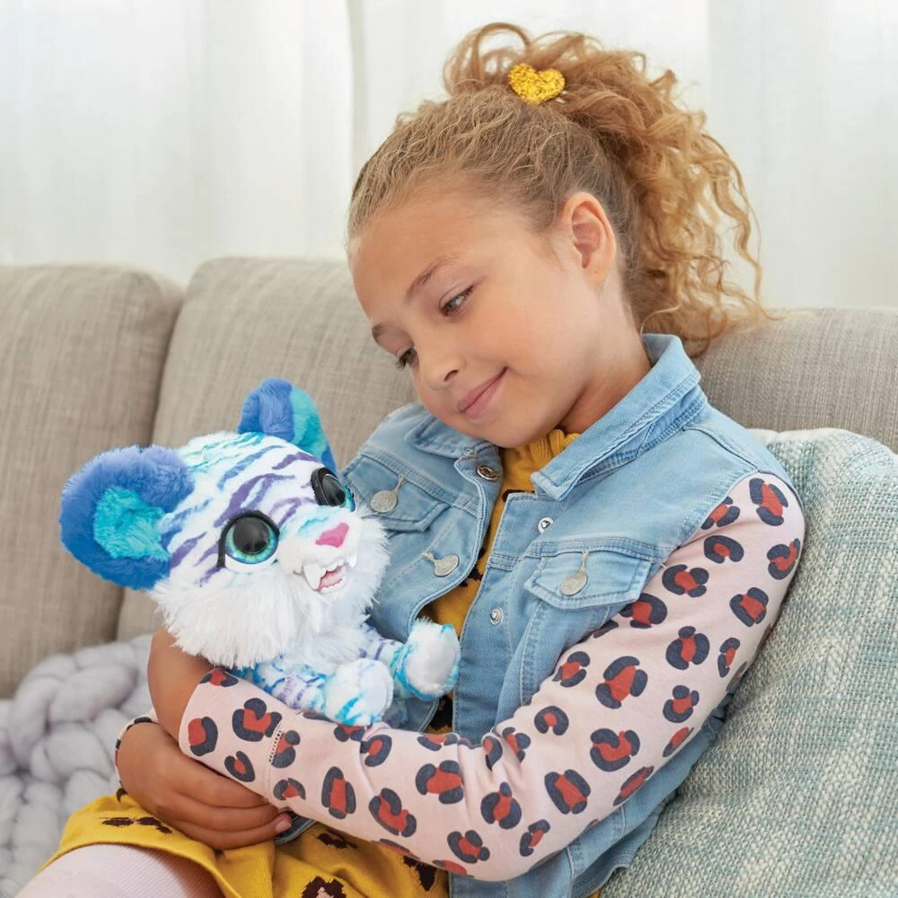 Il claque des dents et grelotte parce qu’il a froid. Câline- la peluche Furreal tigre ! Il ronronnera et son cœur s’illuminera. Hauteur 21 cm.