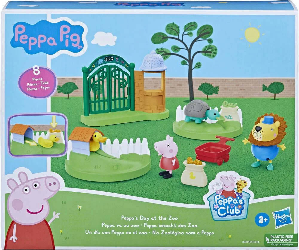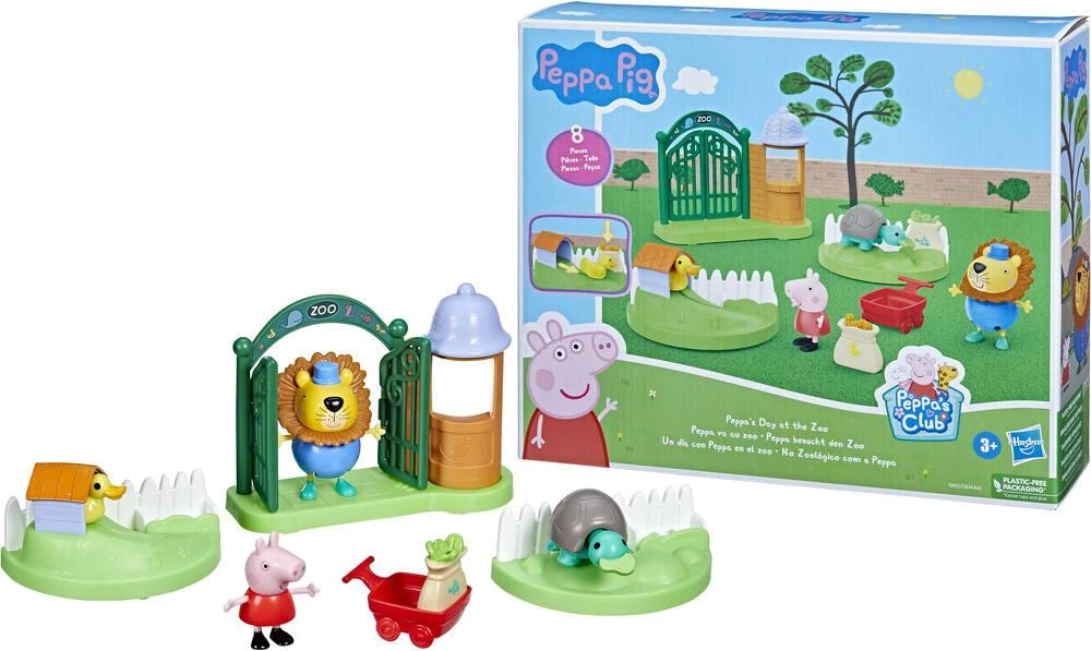 Peppa Pig va au Zoo pour aider M. Lion à nourrir les animaux ! Les portes du Zoo s’ouvrent, M. Lion controle les billets au guichet et c’est parti pour la visite ! Peppa adore apporter la nourriture aux animaux avec la petit brouette et regarder les canards et les tortues manger ! Un playset interactif pour s’amuser comme dans le dessin animé.