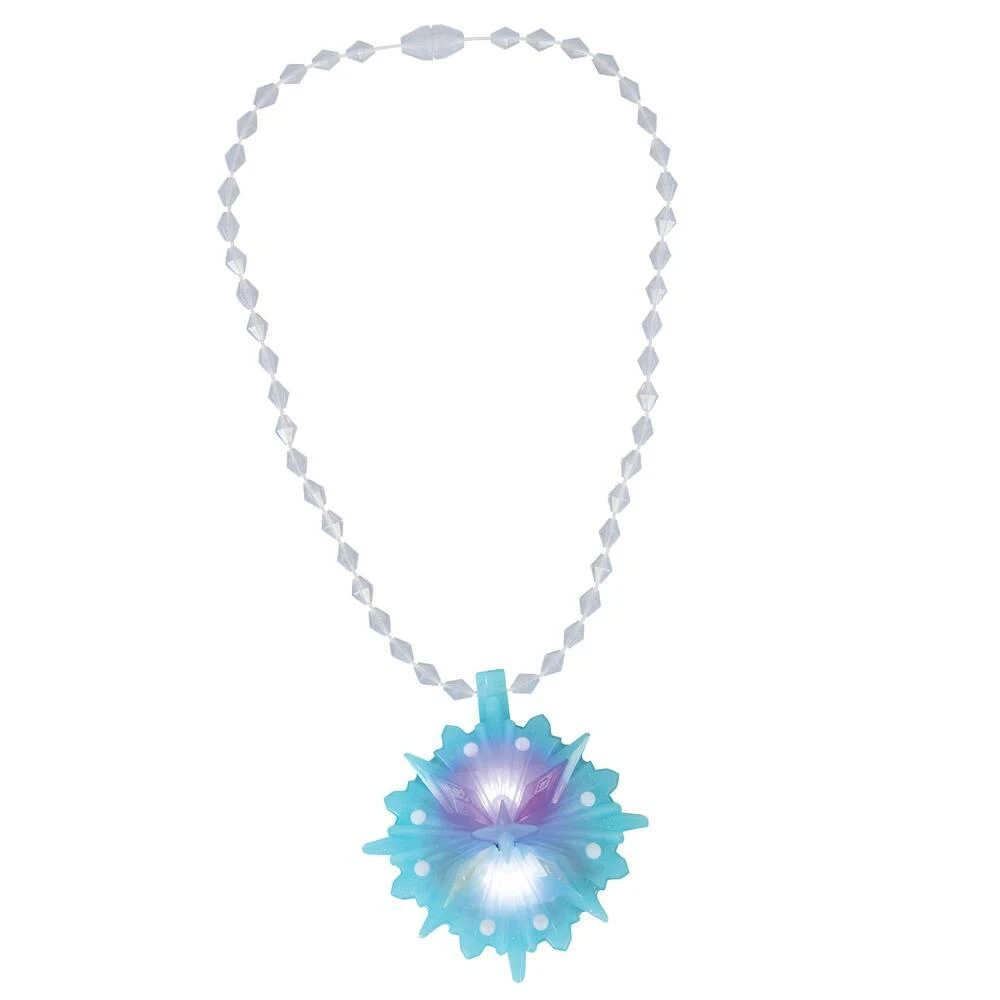 Collier d’Elsa avec effets sonores et lumineux. Appuie sur le bouton au centre du collier et regarde le s’illuminer et écoute le fredonner la mélodie de la chanson phare du film La Reine des Neiges 2. Il représente les 5 éléments du film : l’eau, la terre, le feu, l’air et … Elsa ! 3 piles boutons (LR44) fournies. Fonction Try Me. En plastique. Dimensions de la boîte : 15 x 4.5 x 22 cm. Licence : Disney La Reine des Neiges 2.