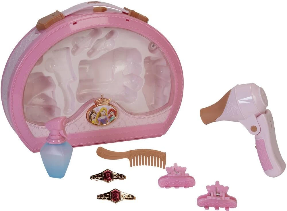 La mallette coiffure et le coffret maquillage contiennent des accessoires pour ressembler aux princesses Disney. Il y a par exemple un rouge à lèvres, une bouteille de parfum ou encore un sèche-cheveux, tous factices. Chaque coffret est à retrouver parmi les jeux et jouets 3 ans.