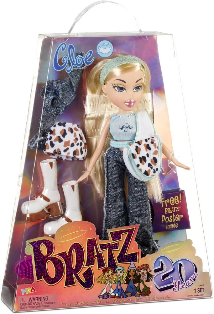 Poupée Originale BRATZ 20ème anniversaire. Il s’agit du personnage de Cloé. Réplique presque exacte de la poupée originale de 2001. Livré avec sa tenue complète et ses accessoires. Les Bratz® ont fait leurs débuts super stylés en 2001 ! 20 ans plus tard, elles sont de retour pour le plus grand plaisir de tous les fans dans leur emballage iconique holographique en édition spéciale ! Chaque poupée comprend 2 tenues super stylées, 2 paires de chaussures, un sac et un bandeau ou un chapeau. En plus de leur look fabuleux, chaque poupée comprend également une brosse à cheveux et une affiche holographique. Cloé, sa passion mode, ce sont les imprimés d’animaux exotiques et les tissus scintillants ! Ses amis l’appellent « Ange » parce que c’est ce qu’elle est !