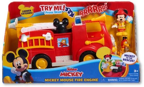 Mickey à la rescouse au volant de son camion de pompier avec fonctions sonores et lumineuses. Appuie sur le gyrophare pour déclencher la sirène et les lumières. L’échelle se déploie et tourne. Contient 2 figurines (Mickey et Pluto en tenues de pompiers);