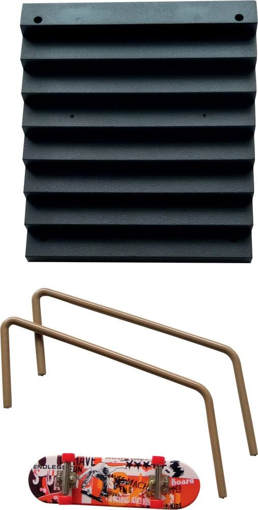 Contient : 1 rampe de skatepark et 1 mini skateboard.