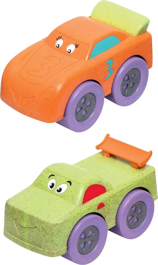 Roo Crew. Chaque pack contient 2 véhicules amusants : voiture orange n°3 et véhicule vert. Chaque « Racing Rascal » est un véhicule roues libres. Eco friendly : contient des matériaux recyclés.