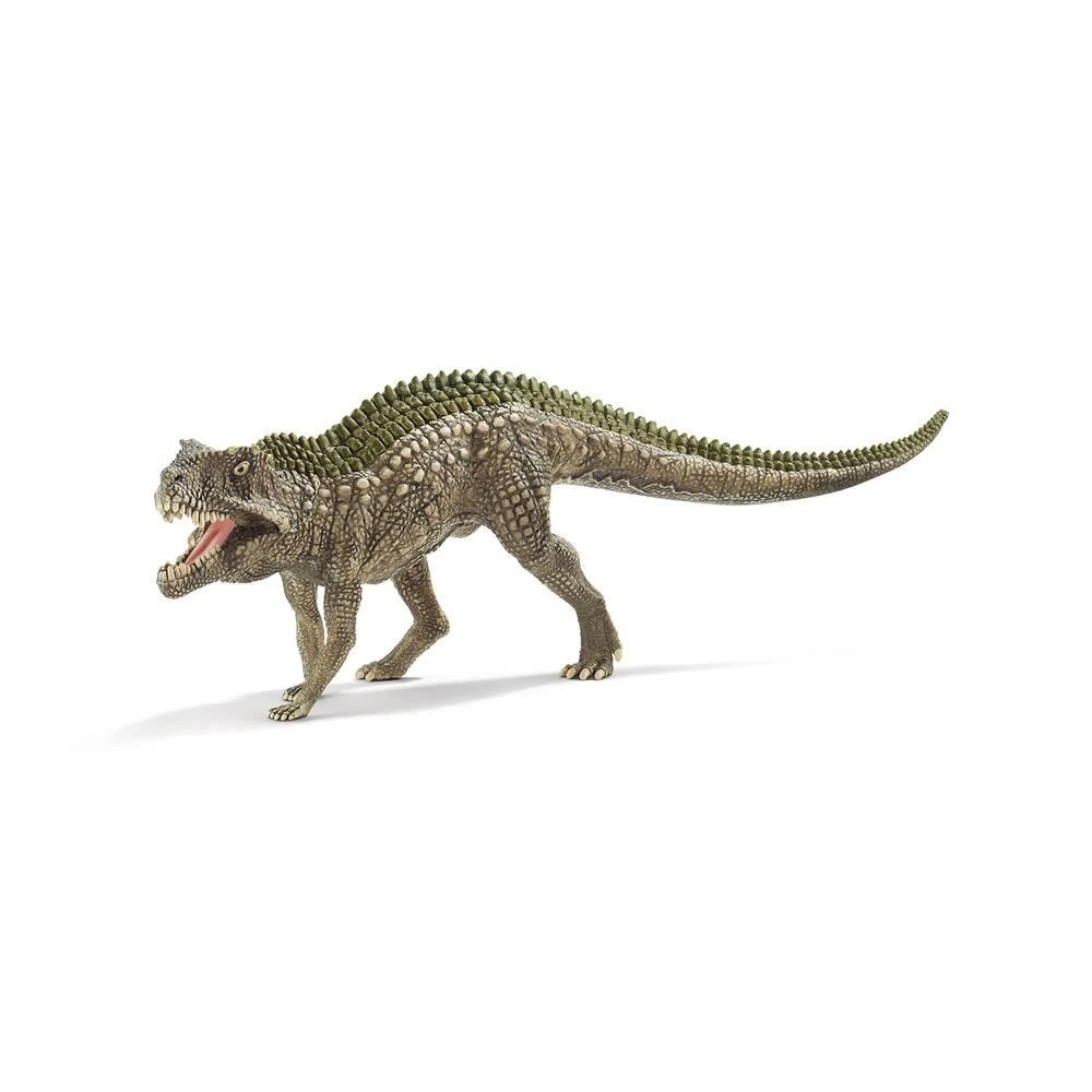 Le Postosuchus était un archosaure et ainsi de la famille des crocodiles actuels. Il avait une ossification visible sur la peau et un long museau étroit. La plupart du temps, il avançait à quatre pattes. Mais parfois, il se tenait sur ses pattes arrières pour tenir sa proie avec ses griffes. Lorsque le Postosuchus de Schleich® Dinosaures ouvre sa puissante mâchoire mobile, ses dents pointues ressemblent à des poignards.