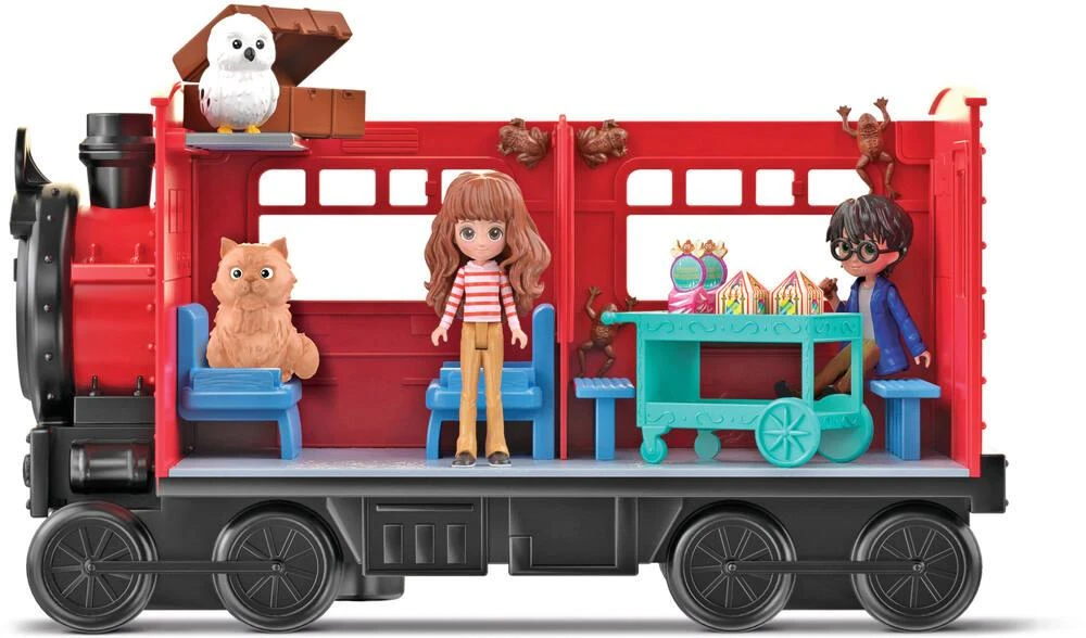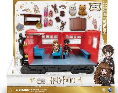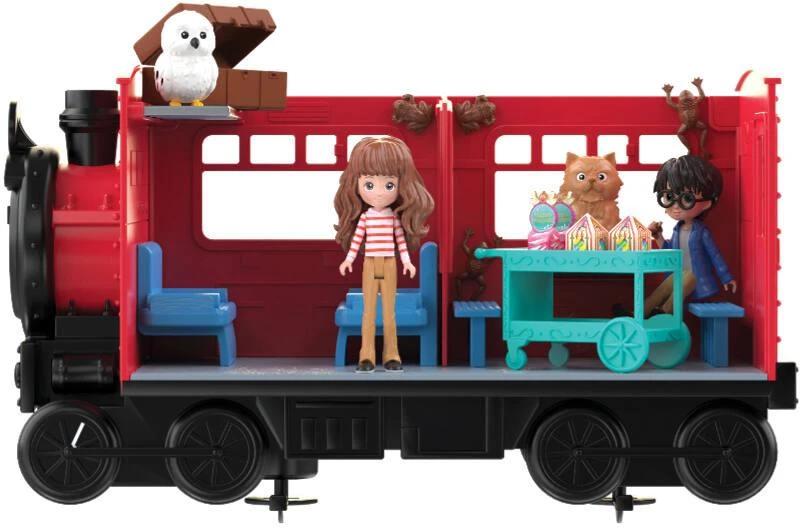 Montez à bord du Poudlard Express avec Harry Potter et Hermione Granger pour rejoindre l’école de sorcellerie. Coffret comprenant 2 figurines Magical Minis dans des tenues exclusives et 12 accessoires : le chariot d’Honeydukes transportant 2 Chocogrenouilles collantes, 2 paquets de dragées surprises de Bertie Crochue, le chariot à bagage avec 2 valises, une feuille d’autocollants, un panneau plate-forme 9 ¾, une figurine d’Hedwige et une figurine de Pattenrond.