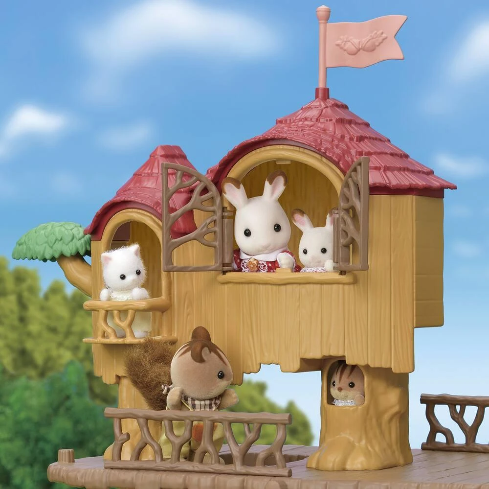 La cabane dans les arbres est un espace de vie en pleine nature pour les Sylvanian Families. Composée de 4 petites pièces et d’une terrasse, elle propose de nombreuses possibilités de jeu. La balançoire en corde monte, descend et tourne sur elle-même quand on actionne la manivelle. La bûche d’arbre glisse le long des branches et s’utilise comme un toboggan pour les bébés. Les bébés peuvent se déplacer à travers les branches de l’arbre qui forment des tunnels. La partie supérieure de la cabane se retire, elle peut se placer au dans différentes position ou sur le sol. Figurines et accessoires non inclus.