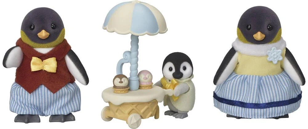 La famille Pingouin est composée de 3 personnages : la maman, le papa, le bébé. Ils sont tous articulés et habillés avec soin. Leurs vêtements peuvent être enlevés et remis à loisir.
