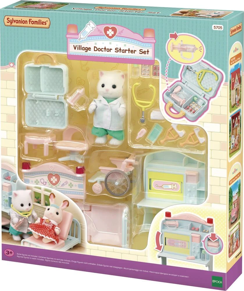 Ce set est idéal pour transformer votre cosy cottage en cabinet médical ou votre monospace rose en ambulance. Il contient également la figurine de la maman Chat Persan en blouse de docteur. Imite le docteur grâce aux différents accessoires : une chaise roulante, un lit, des béquilles ou encore des médicaments.