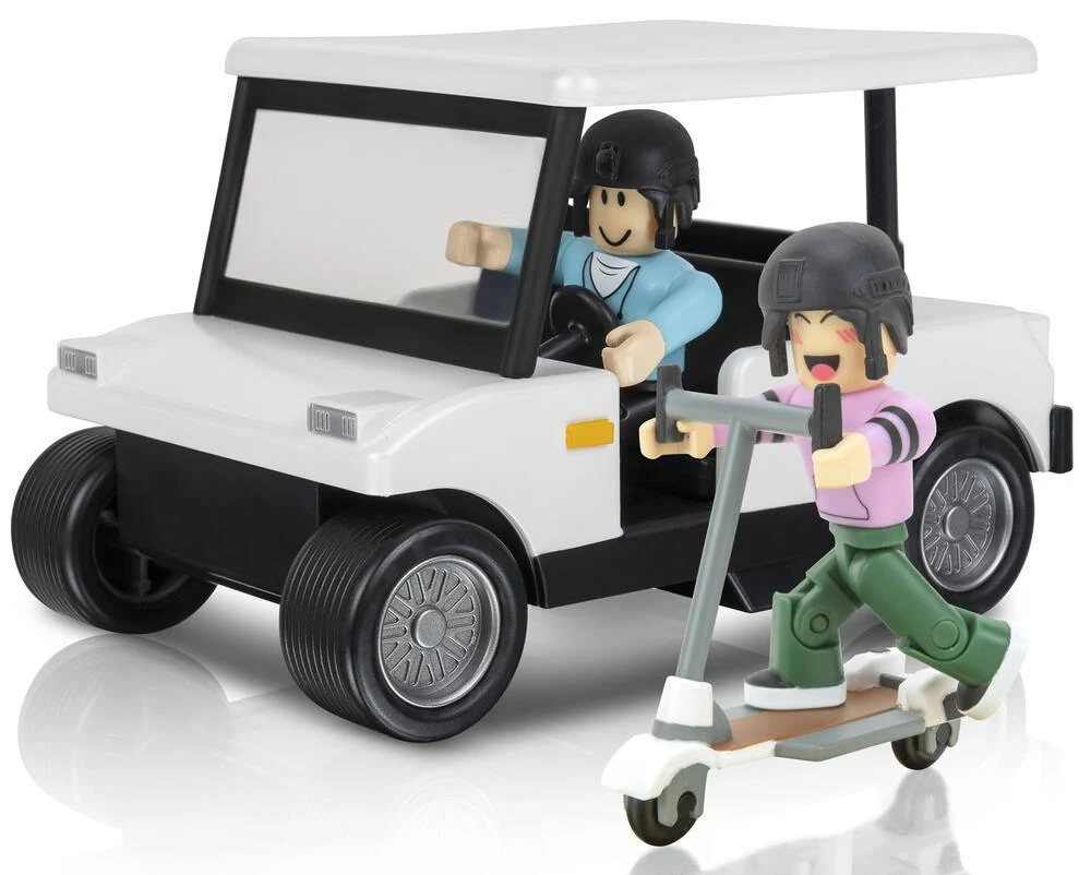 Pack véhicule. Contient 1 véhicule voiturette de golf, 2 figurines de 7.5 cm et des accessoires (1 scooter et 1 skateboard). Les figurines Roblox sont articulées et comprennent des pièces amovibles. Mélange et associe les pièces des figurines pour créer tes propres personnages Roblox. Comprend un code à utiliser sur le site internet Roblox.com pour obtenir un objet virtuel exclusif gratuitement. En plastique. Licence : Roblox.