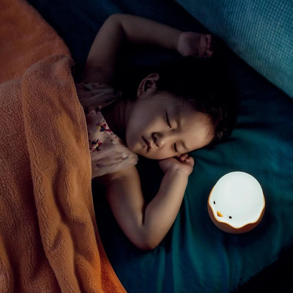 Sympathique veilleuse Eggy Egg en forme de poussin encore dans l’œuf. Lampe LED facile d’utilisation. Puissance : 1.2W. Appuie une fois sur sa tête pour l’allumer ou l’éteindre. Appuie plus longuement sur la tête pour régler l’intensité lumineuse, pour une lumière blanche plus ou moins chaude. Charge rapide : 4.5 heures environ. Autonomie de la batterie : lumière vive (blanche) 5 heures, lumière chaude (faible luminosité) jusqu’à 200 heures. Avec une batterie rechargeable 3.7V Li-Po et un câble USB pour charger inclus. Matières : ABS, PC, silicone. Ce produit n’est pas un jouet.
