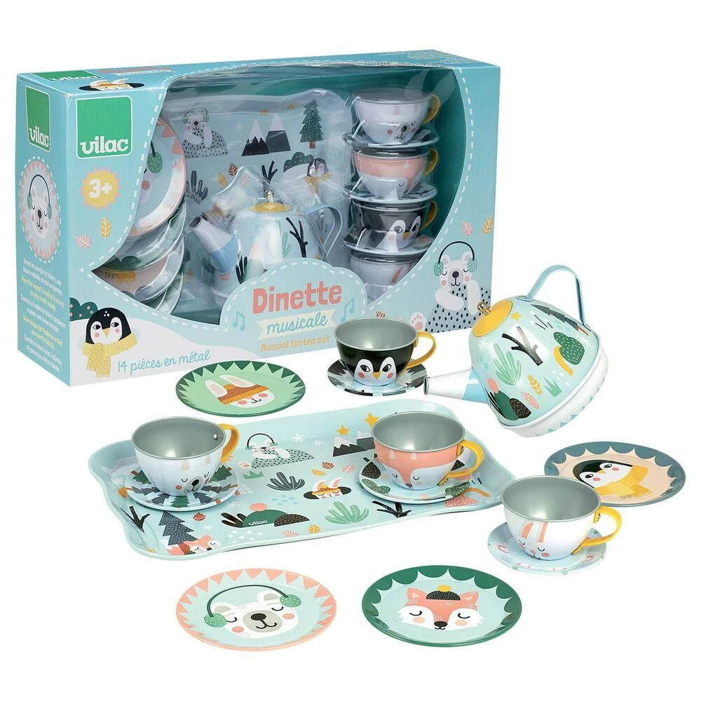 Penche la théière pour entendre une douce mélodie (boîte à musique intégrée) ! Comprend 14 pièces dont 1 plateau et 4 tasses.