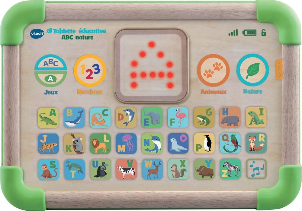 26 touches tactiles pour découvrir toutes les lettres de l’alphabet, leur son et les animaux ! Plus de 240 chansons, mélodies, sons et phrases. Écran LED.
